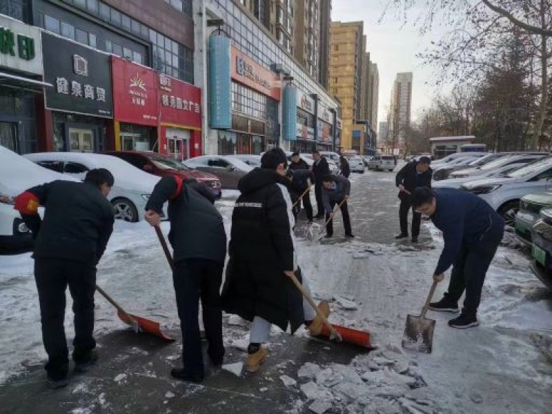 路面積雪經(jīng)過(guò)行人及車輛的踩碾及降溫結(jié)冰變得又厚又硬,給清掃工作帶來(lái)了極大困難,但集團(tuán)公司的黨員志愿者們不畏艱苦,干勁十足?;顒?dòng)中,大家分工明確、相互配合,利用鐵鍬、雪鏟等工具,有條不紊地開展積雪清理活動(dòng),重點(diǎn)對(duì)停車場(chǎng)主干道、人行通道及自行車存放處進(jìn)行了集中清理,確保了日常路面暢通和群眾出行安全。
