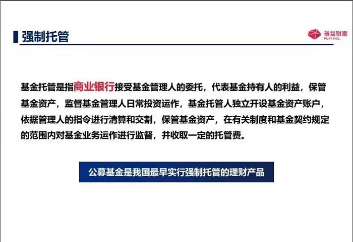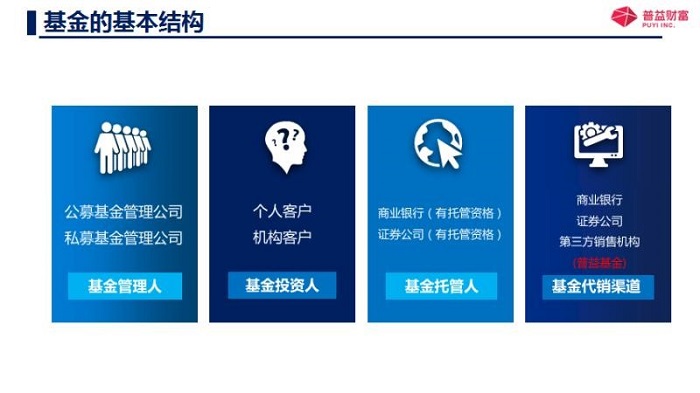 那另外一個呢,基金投資人就是咱們普通老百姓,也是基金投資人呢,還有機(jī)構(gòu)投資者,那另外一個就是基金托管人,就是來保管著咱們資金的安全的就是基金托管人,第一班是有商業(yè)銀行或者證券公司,他們還必須得有托管的資質(zhì),當(dāng)然了,還有基金代銷機(jī)構(gòu),也就是去銷售基金的,比如說一些商業(yè)銀行呀,證券公司呀,期貨公司呀,還有一些第三方的獨立的基金代銷機(jī)構(gòu),像咱們的普益基金就是基金代銷機(jī)構(gòu)。