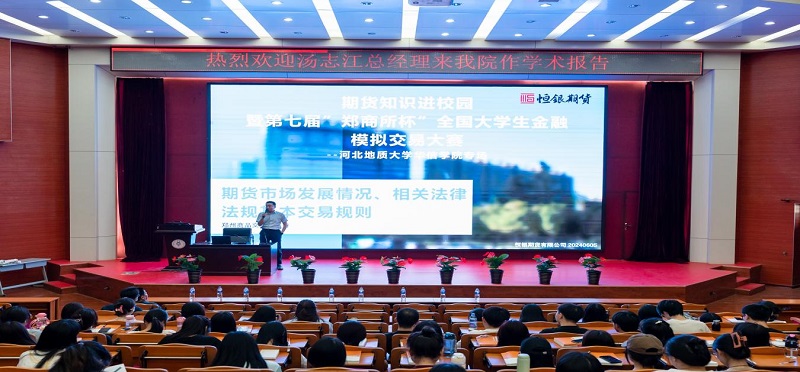 為貫徹中國證監(jiān)會與教育部聯(lián)合簽署的《關于加強證券期貨知識普及教育的合作備忘錄》精神,響應推動投資者教育納入國民教育體系號召,做好期貨知識普及工作,在鄭州商品交易所(以下簡稱“鄭商所”)的支持下,國富投資集團所屬恒銀期貨有限公司(以下簡稱“恒銀期貨”)作為協(xié)辦單位,聯(lián)合河北地質大學華信學院聯(lián)合舉辦了期貨知識進校園暨第七屆“鄭商所杯”全國大學生金融模擬交易大賽——河北地質大學華信學院專場(以下簡稱“鄭商所杯”)。